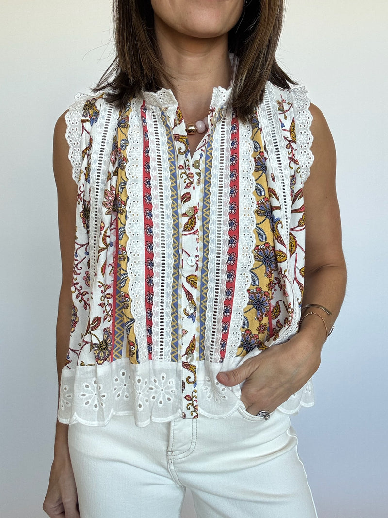 PREORDER | Cleo Breezy Eyelet Trim Top | EST SHIP DATE 2/27