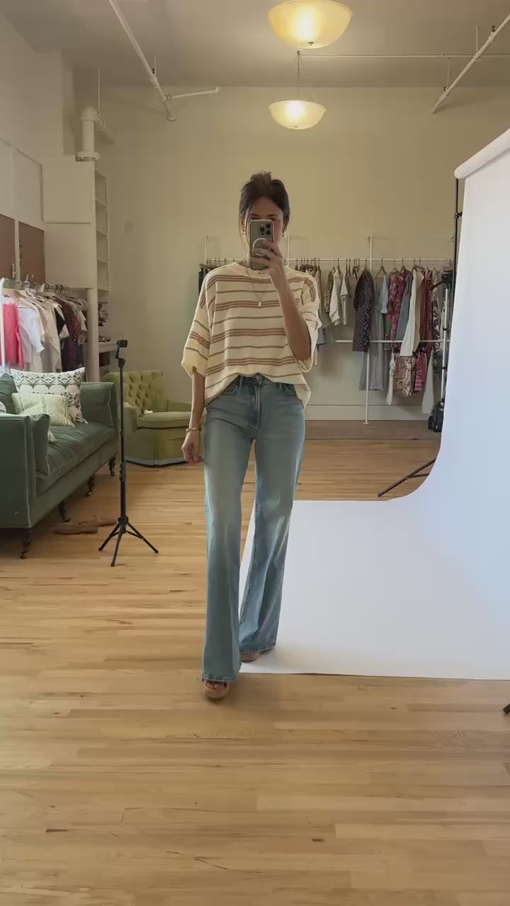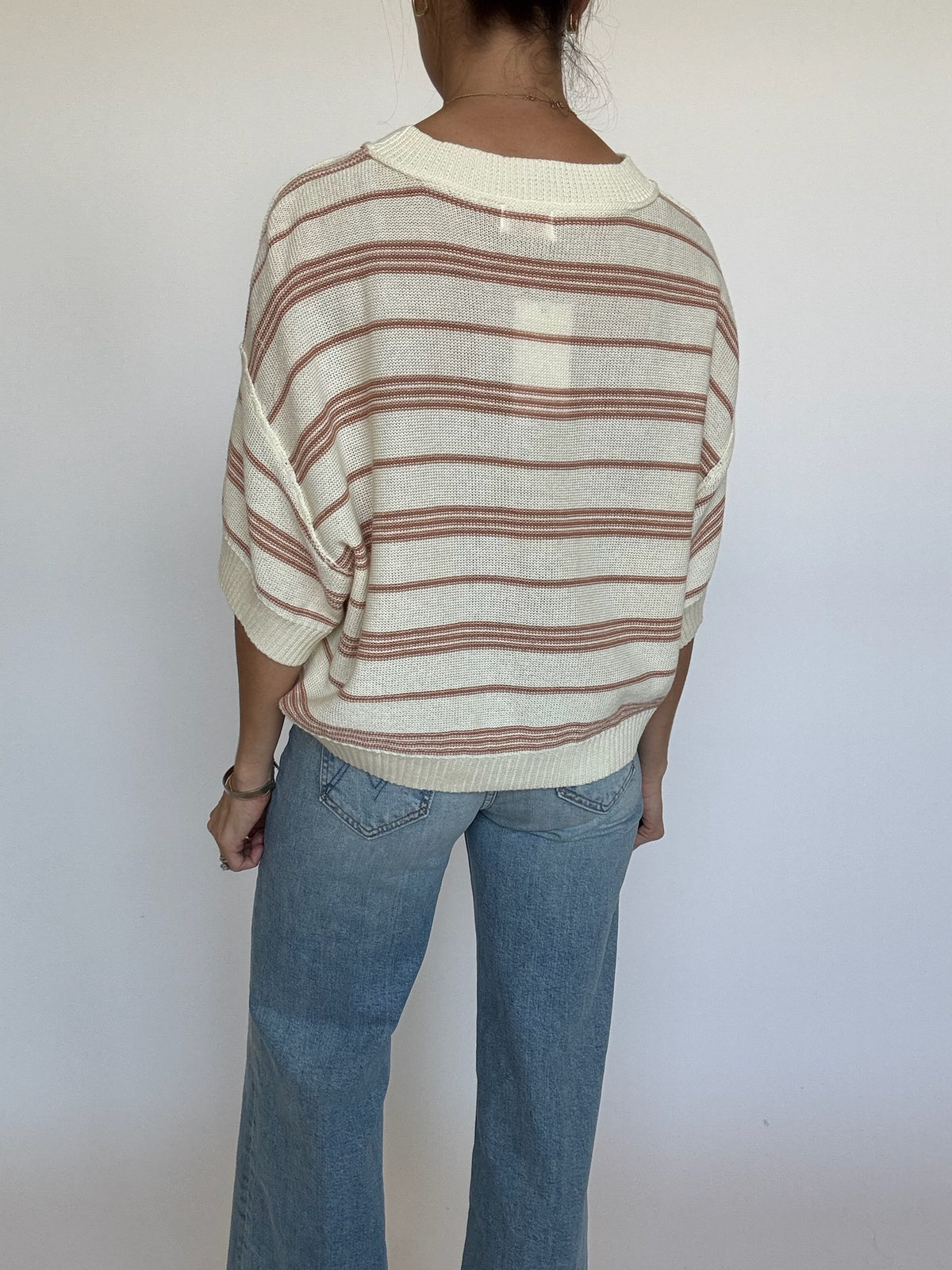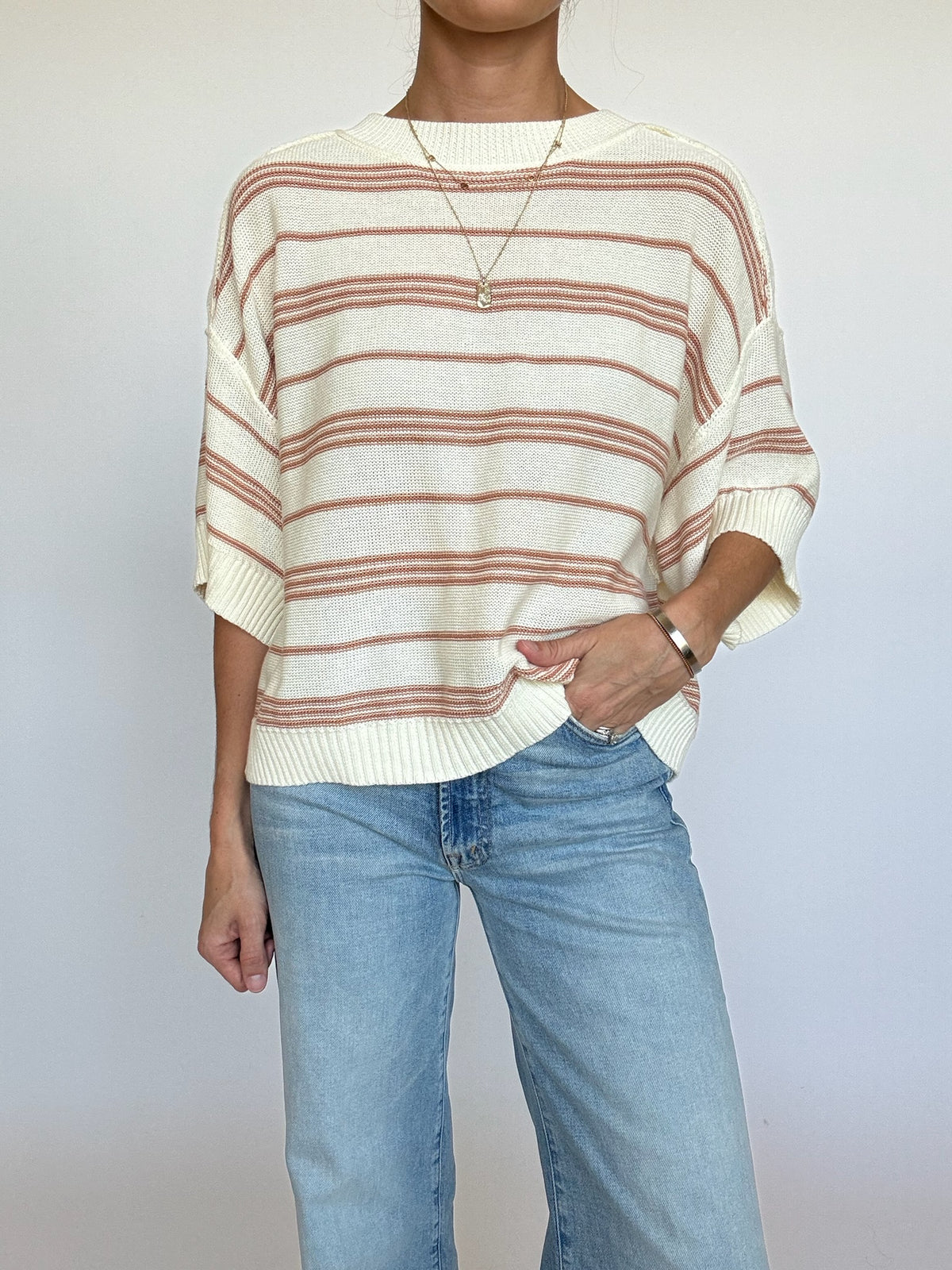 Meet your new favorite striped knit — soft latte tones and breathable fabric that works solo or layered, no matter the season.