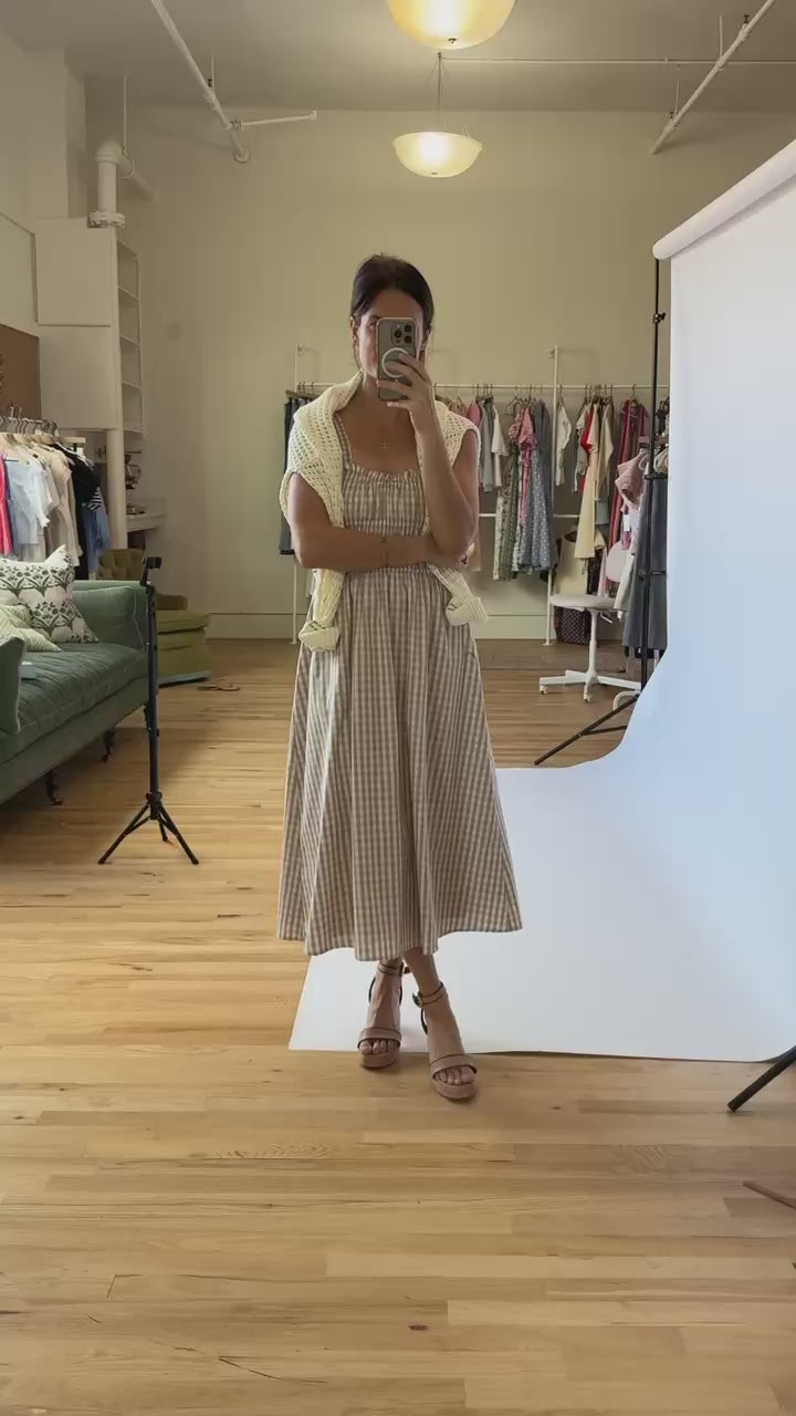 A breezy gingham maxi that's perfect for summer — wear it anywhere from brunch to dinner. Soft, comfortable, and endlessly versatile, this custom piece is the go-to dress you'll reach for all season long.